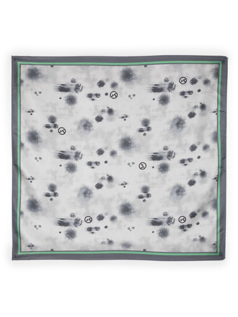logo-print silk foulard scarf Highlights - Ash grey - Silk - Twill weave - Abstract pattern print - All-over logo print - Contrasting border - Square shape Made in Italy Composition Silk 100% SIZE & FIT Measurement LENGTH 35.43 in(90 cm) WIDTH 35.43 in(90 cm)