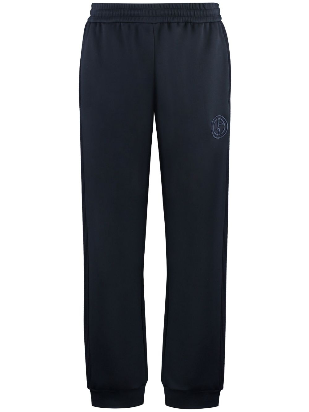 logo-print straight-leg trousers Highlights - Blue - Elasticated waistband - Elasticated cuffs - Two side slit pockets - Rear welt pocket - Logo print at the leg Made in Italy Composition Polyamide 52%, Modal 48% Washing instructions Hand Wash
