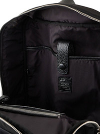 logo-stamp partitioned backpack Highlights - Black - Silver-tone logo lettering - Front zip-fastening pocket - Multiple compartments - Top zip fastening - Single top handle - Adjustable shoulder straps - Silver-tone hardware Imported Composition Outer: Polyester 100%