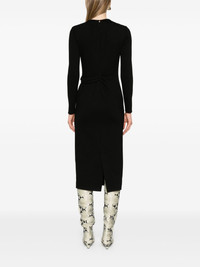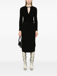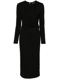 long-sleeve midi dress Highlights - Black - Stretch-jersey - Round gathered neckline - Front cut-out detailing - Long sleeves - Waist draped detailing - Mid-calf length - Straight hem - Rear slit - Concealed rear hook and zip fastening Made in Italy Composition Outer: Viscose 71%, Polyamide 24%, Elastane 5% Lining: Polyamide 82%, Elastane 18% SIZE & FIT Model measurements Height 5 ft 11 in(1.8 m) Bust/Chest 32.67 in(83 cm) Hips 36.22 in(92 cm) Waist 25.19 in(64 cm) FittingInformation Designed for a close fit throughout The vented hem offers movement at the rear Made from a midweight stretch fabric, this piece offers elasticity and flexibility when worn This piece fits true to size – take your usual size