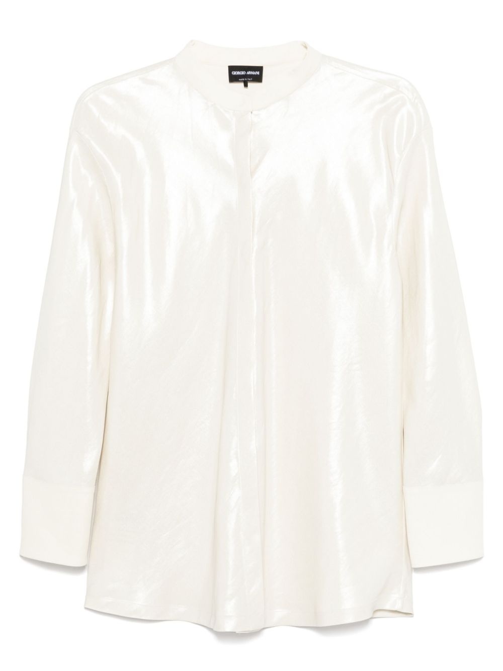 metallic-effect shirt Highlights - Light beige - Concealed front press-stud fastening - Press-stud fastening cuffs - Band collar - Long sleeves Made in Italy Composition Polyurethane 100%, Viscose 72%, Linen/Flax 28% SIZE & FIT Model measurements Height 5 ft 11 in(1.8 m) Bust/Chest 32.67 in(83 cm) Hips 36.22 in(92 cm) Waist 24.4 in(62 cm) FittingInformation Designed for a relaxed fit, this piece allows for comfort and movement when worn Made from a midweight non-stretch fabric