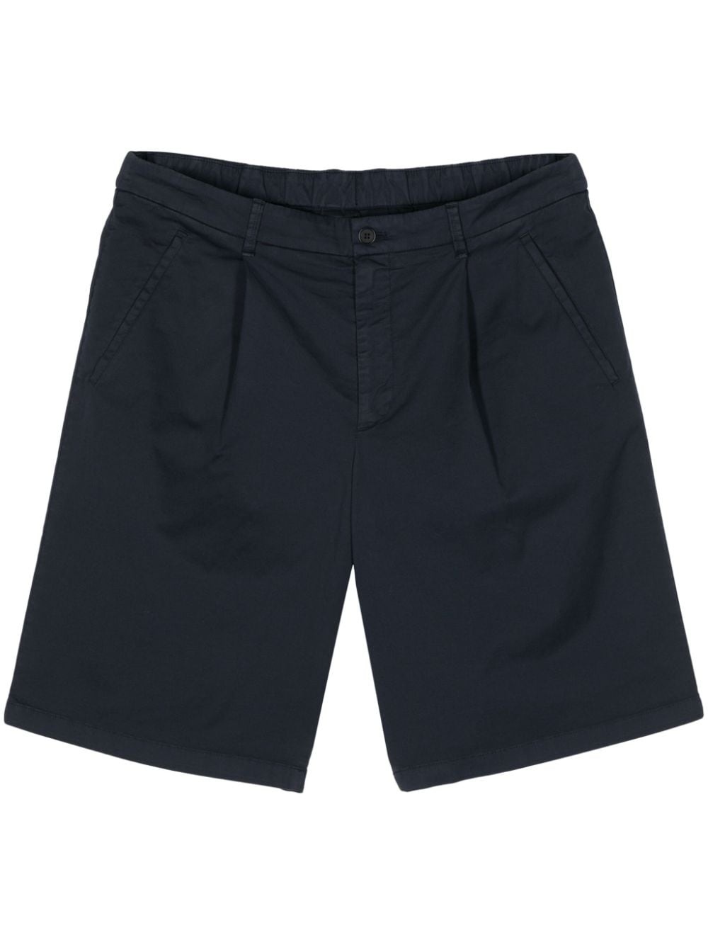 pleat-detail chino shorts Highlights - Navy blue - Stretch-cotton - Interlock twill weave - Belt loops - Pleat detailing - Two diagonal pockets to the sides - Rear jetted pocket - Rear elasticated waistband - Rear dart detailing - Knee-length - Unlined - Rear button and zip fastening Made in Italy Composition Cotton 97%, Spandex/Elastane 3%