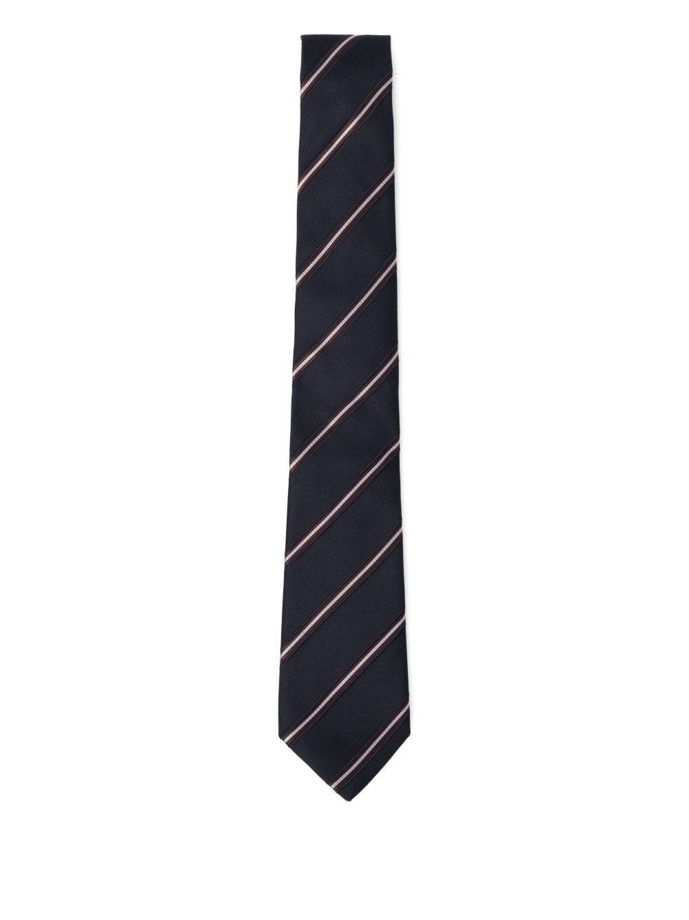 Regimental striped tie Highlights - Navy blue - Self-tie fastening - Pointed tip - Embroidered logo Made in Italy Composition Silk 87%, Cotton 13% Washing instructions Dry Clean Only