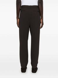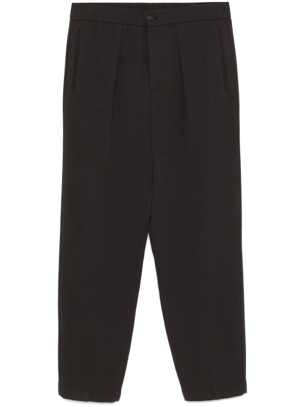 ribbed trousers Highlights - Coffee brown - Virgin wool blend - Fine ribbed - Concealed fly and button fastening - Belt loops - Pleat detailing - Two front jetted pockets - Two rear button-fastening jetted pockets - Tapered leg Made in Italy Composition Lining: Acetate 63%, Viscose 37% Outer: Virgin Wool 50%, Viscose 50% SIZE & FIT Model measurements Height 6 ft 2 in(1.87 m) Bust/Chest 36.41 in(92.5 cm) Hips 37 in(94 cm) Waist 29.52 in(75 cm) FittingInformation Designed for a tapered leg, offering a loose unrestricted fit over the leg with a closer fit towards the ankle Made from a midweight non-stretch fabric