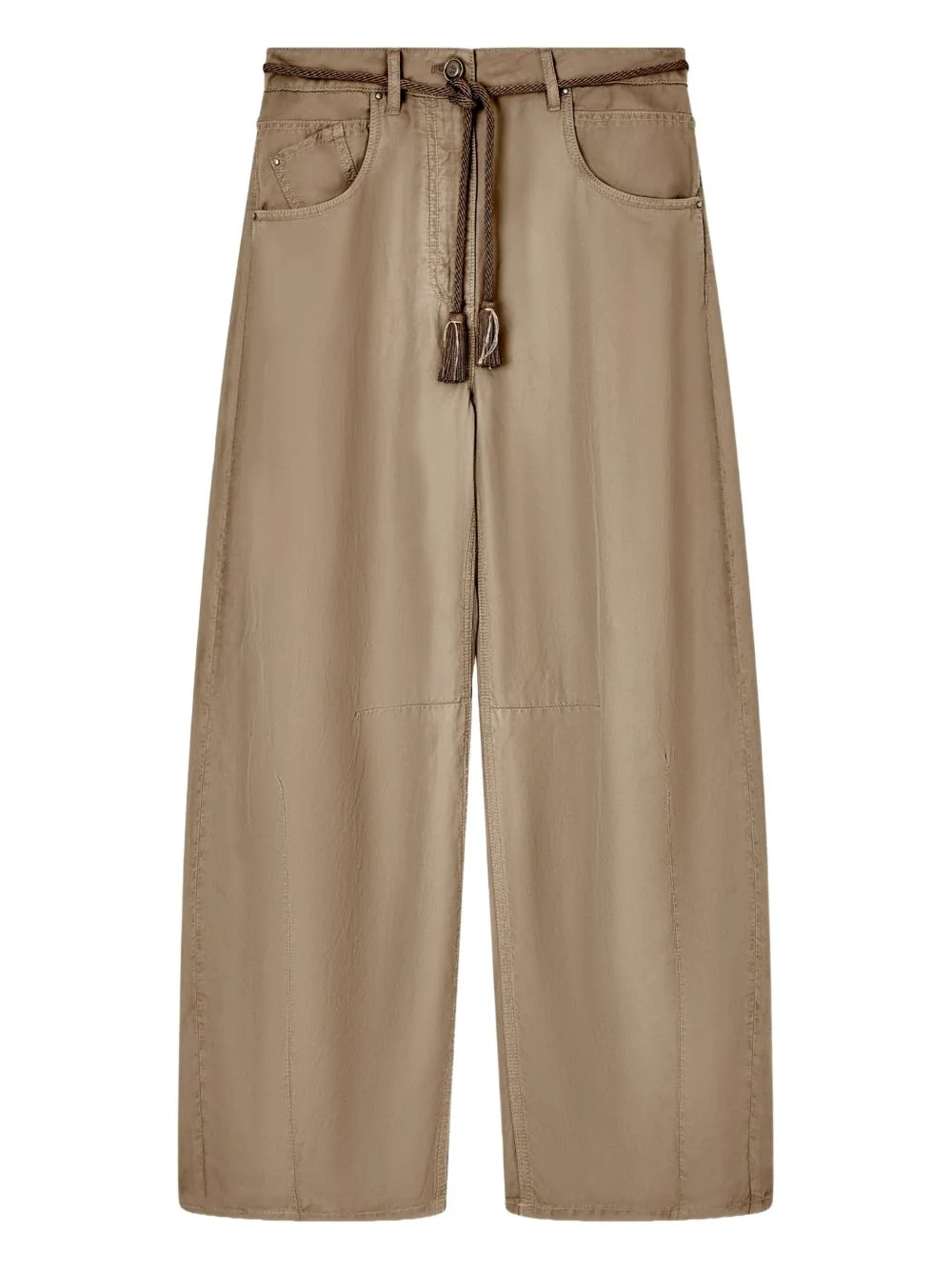 rope belt trousers Highlights - Brown - Rope belt - Belt loops - Front pockets - Rear patch pockets - Tonal stitching Made in Italy Composition Cupro 47%, Linen/Flax 30%, Cotton 23%