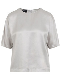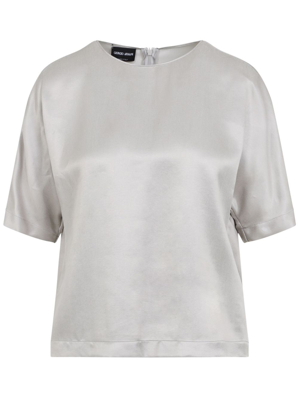 satin blouse Highlights - Ash grey - Rear zip fastening - Round neck - Short sleeves - Straight hem Made in Italy Composition Viscose 58%, Cupro 42% SIZE & FIT FittingInformation Designed for a relaxed fit, this piece allows for comfort and movement when worn Made from a midweight non-stretch fabric