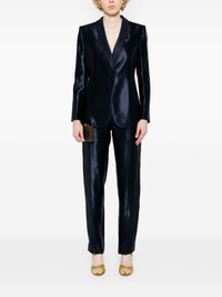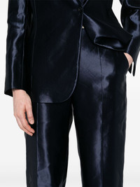 seam-detail satin trousers Highlights - Navy blue - Linen-silk blend - Satin finish - Seam detailing - Dart detailing - Two diagonal pockets to the sides - Concealed side zip fastening Made in Italy Composition Linen/Flax 63%, Silk 37% SIZE & FIT Model measurements Height 5 ft 9 in(1.75 m) Bust/Chest 34.64 in(88 cm) Hips 36.61 in(93 cm) Waist 26.37 in(67 cm) FittingInformation Designed for a tapered fit, these trousers allow for a close fit at the waist and a loose unrestricted fit over the leg with a closer fit towards the ankle Made from a lightweight non-stretch fabric This piece fits true to size – take your usual size