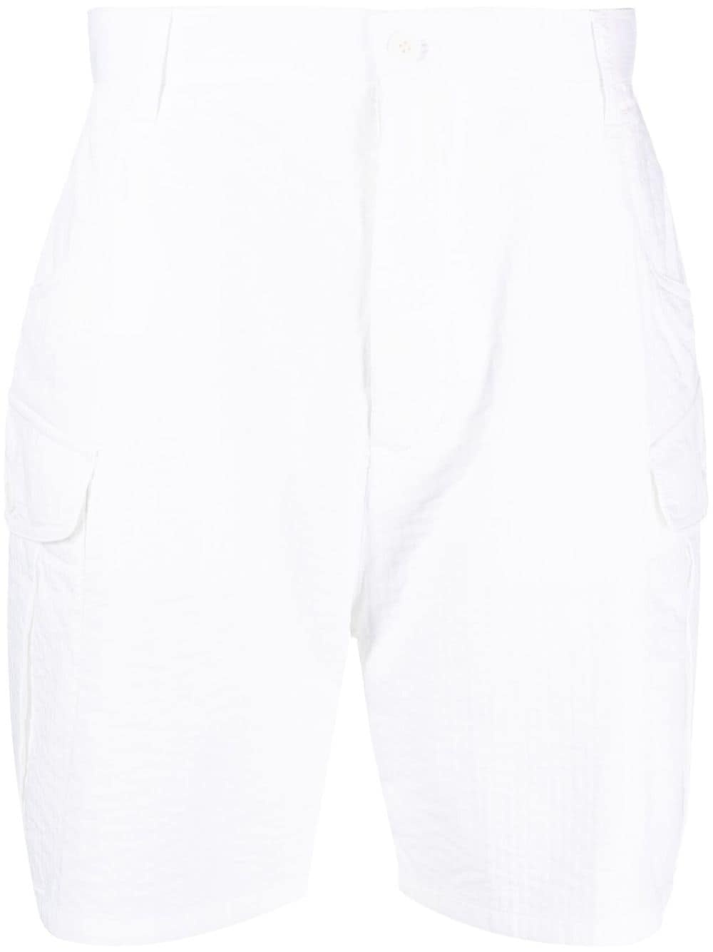 seersucker cargo shorts Highlights - White - Cotton blend - Seersucker texture - Belt loops - High-waisted - Straight leg - Front button fastening - Two side inset pockets - Two side cargo pockets - Two rear flap pockets Made in Italy Composition Cotton 85%, Polyamide 15% SIZE & FIT Model measurements Height 6 ft 1 in(1.86 m) Bust/Chest 34.64 in(88 cm) Hips 35.43 in(90 cm) Waist 27.55 in(70 cm)