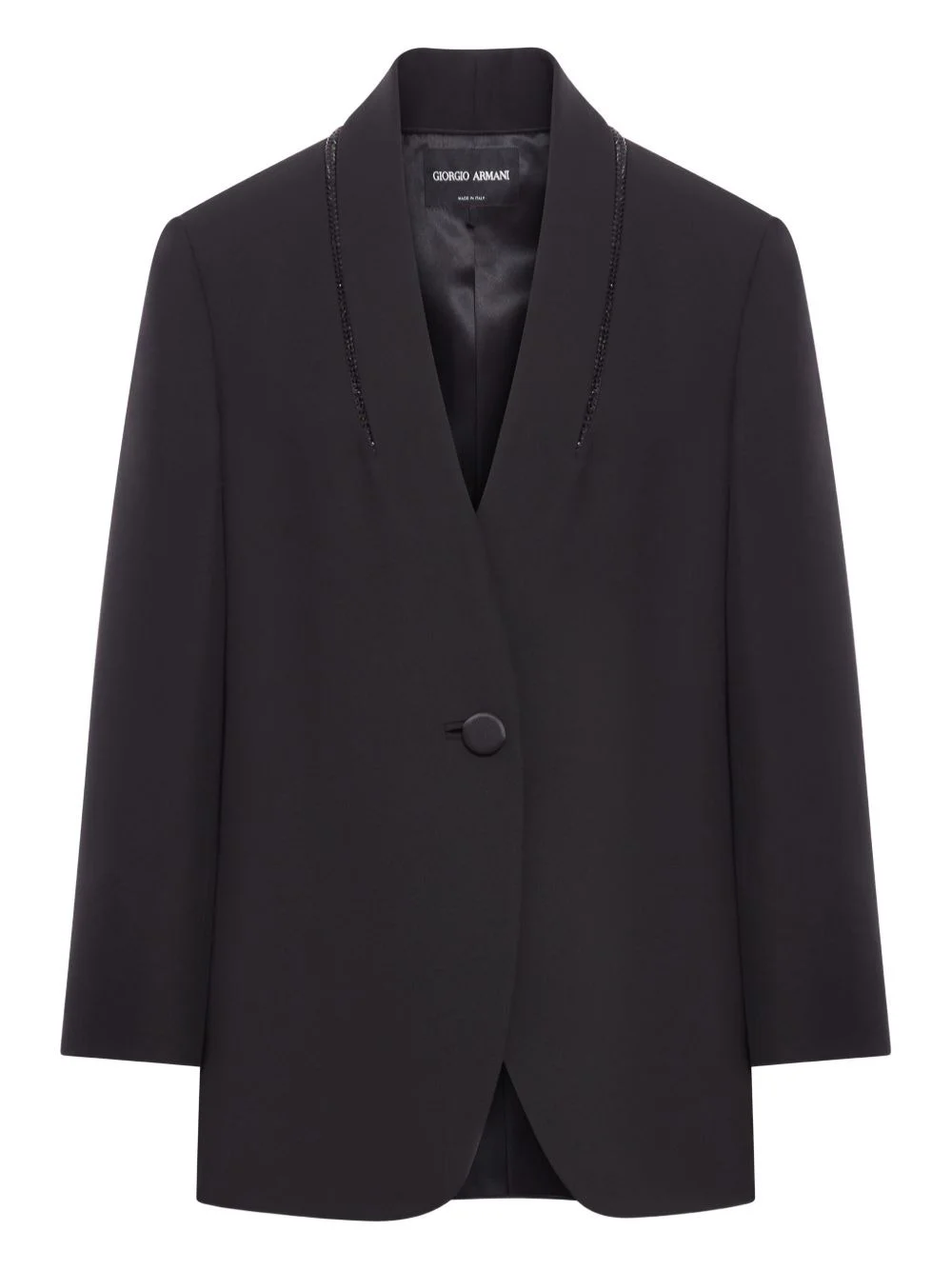 sequin-embellished single-breasted blazer Highlights - Black - Shawl collar - Sequin embellishment - Button fastening Made in Italy Composition Silk 100% Washing instructions Read Manufacturer Guidelines
