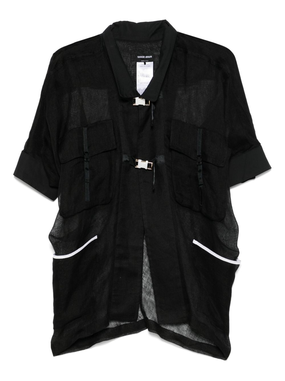 short-sleeved shirt Highlights - Black - Front buckle fastening - Two chest flap pockets - Two front patch pockets - Press-stud fastening cuffs Made in Italy Composition Linen/Flax 100%, Cotton 100%, Polyamide 100% SIZE & FIT Model measurements Height 5 ft 10 in(1.79 m) Bust/Chest 33.07 in(84 cm) Hips 35.82 in(91 cm) Waist 24.01 in(61 cm) FittingInformation Designed to be unstructured, offering a loose fit throughout Made from a midweight non-stretch fabric