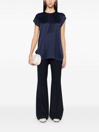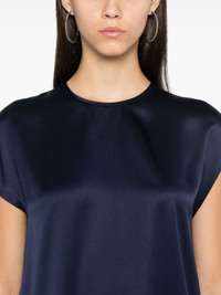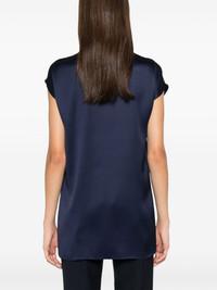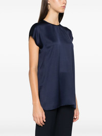 silk blouse Highlights - Dark blue - Silk - Satin finish - Single rear button fastening - Round neck - Cap sleeves - Short side slits - High-low hem Made in Italy Composition Silk 100% SIZE & FIT Model measurements Height 5 ft 10 in(1.78 m) Bust/Chest 33.85 in(86 cm) Hips 36.61 in(93 cm) Waist 26.77 in(68 cm) FittingInformation Designed for a slim fit that sits just away from the body offering a close yet comfortable fit Made from a lightweight non-stretch fabric