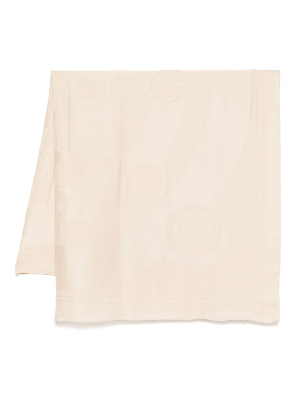 silk scarf Highlights - Light beige - Jacquard logo motif - Finished edge - Rectangle shape Made in Italy Composition Silk 100% SIZE & FIT Measurement LENGTH 47.63 in(121 cm) WIDTH 46.06 in(117 cm)