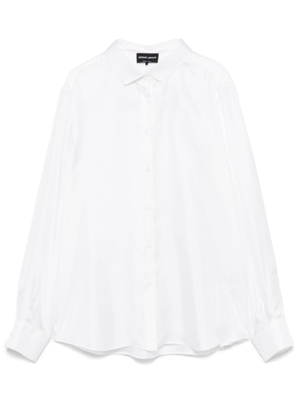 silk shirt Highlights - White - Organic silk - Satin finish - Front button fastening - Classic collar - Long sleeves - Buttoned cuffs - Curved hem Made in Italy Composition Organic Silk 100%
