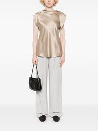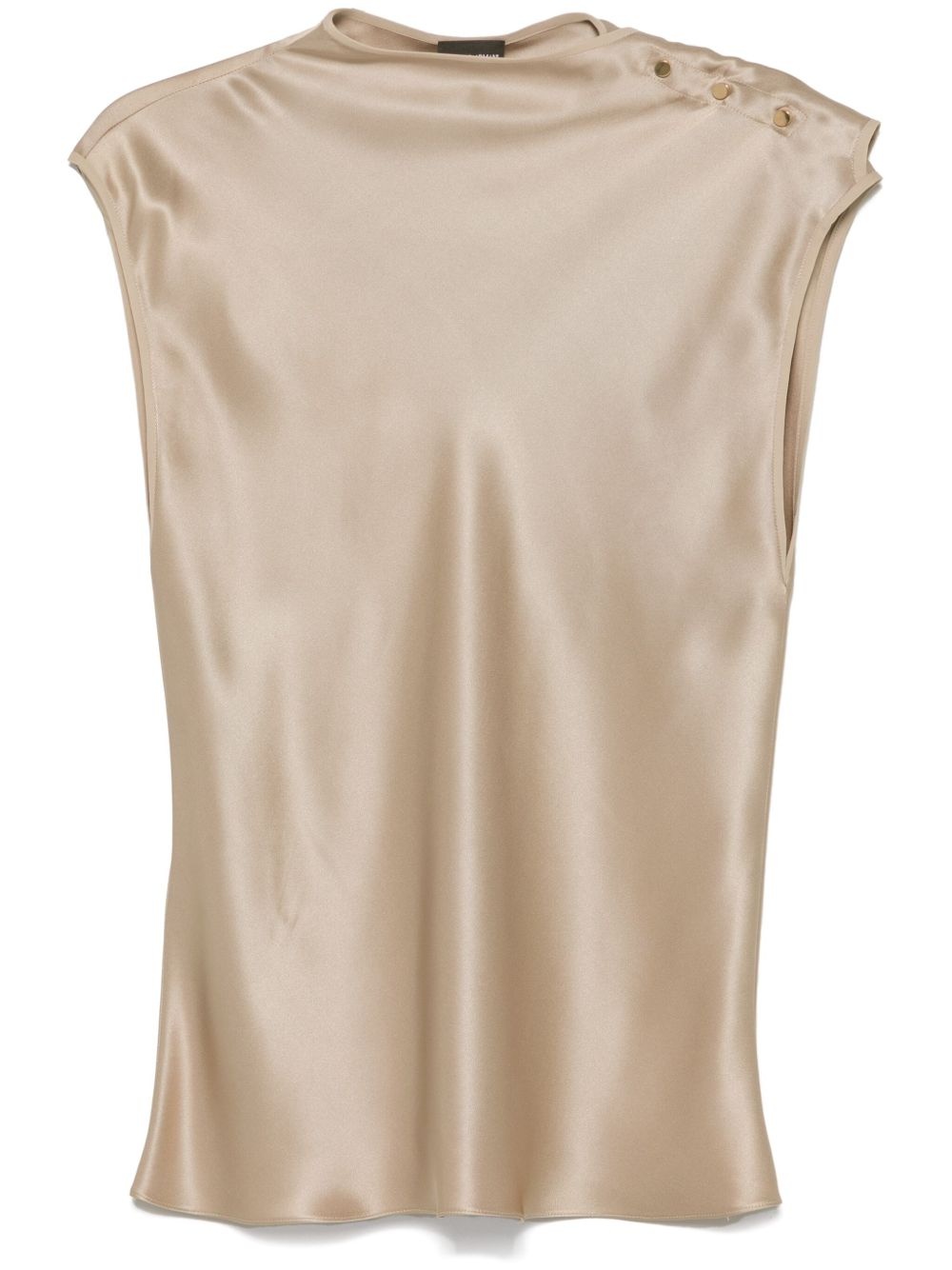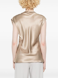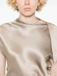 silk top Highlights - Sand beige - Press-stud fastening at the shoulder - Mock neck - Short sleeves - Scarf detailing Made in Italy Composition Silk 100% SIZE & FIT Model measurements Height 5 ft 9 in(1.75 m) Bust/Chest 34.64 in(88 cm) Hips 36.61 in(93 cm) Waist 26.37 in(67 cm) FittingInformation Designed for a slim fit that sits just away from the body offering a close yet comfortable fit Made from a lightweight non-stretch fabric