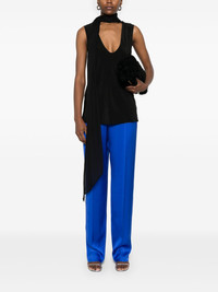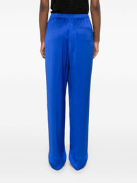 silk trousers Highlights - Royal blue - Silk - Satin finish - Concealed front fastening - Elasticated waistband - Mid-rise - Pressed crease - Two side slit pockets - Rear welt pocket - Straight leg Made in Italy Composition Silk 100% SIZE & FIT Model measurements Height 5 ft 11 in(1.8 m) Bust/Chest 31.49 in(80 cm) Hips 36.61 in(93 cm) Waist 24.4 in(62 cm) FittingInformation Designed for a tapered fit, these trousers allow for a close fit at the waist and a loose unrestricted fit over the leg with a closer fit towards the ankle The elasticated waist allows for a comfortable fit Made from a lightweight non-stretch fabric