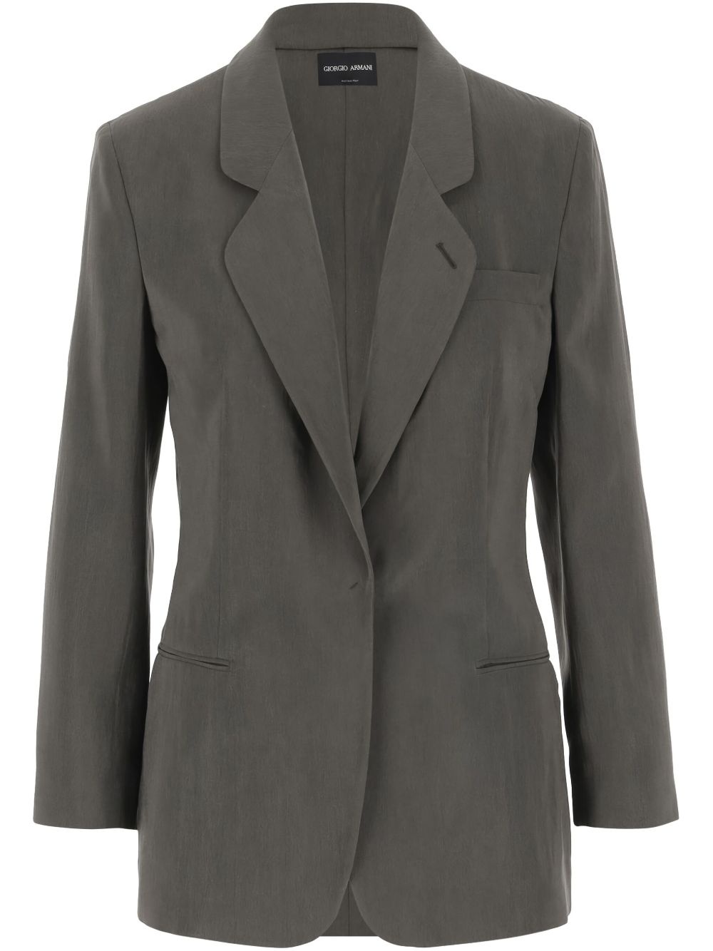 single-breasted blazer Highlights - Grey - Front button fastening - Long sleeves - Classic lapels - Two side slit pockets Made in Italy Composition Silk 84%, Polyester 16% SIZE & FIT FittingInformation Designed for a relaxed fit, this piece allows for comfort and movement when worn The internal shoulder pads offer a structured shape Made from a lightweight non-stretch fabric