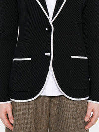 single-breasted blazer Highlights - Black - Front button fastening - Side patch pockets - Long sleeves - Contrasting trim Made in Italy Composition Silk 95%, Polyamide 4%, Elastane 1% SIZE & FIT Model measurements Height 5 ft 9 in(1.75 m) Bust/Chest 34.64 in(88 cm) Hips 36.61 in(93 cm) Waist 26.37 in(67 cm) FittingInformation Designed for a slim fit that sits just away from the body offering a close yet comfortable fit The internal shoulder pads offer a structured shape Made from a midweight stretch fabric, this piece offers elasticity and flexibility when worn