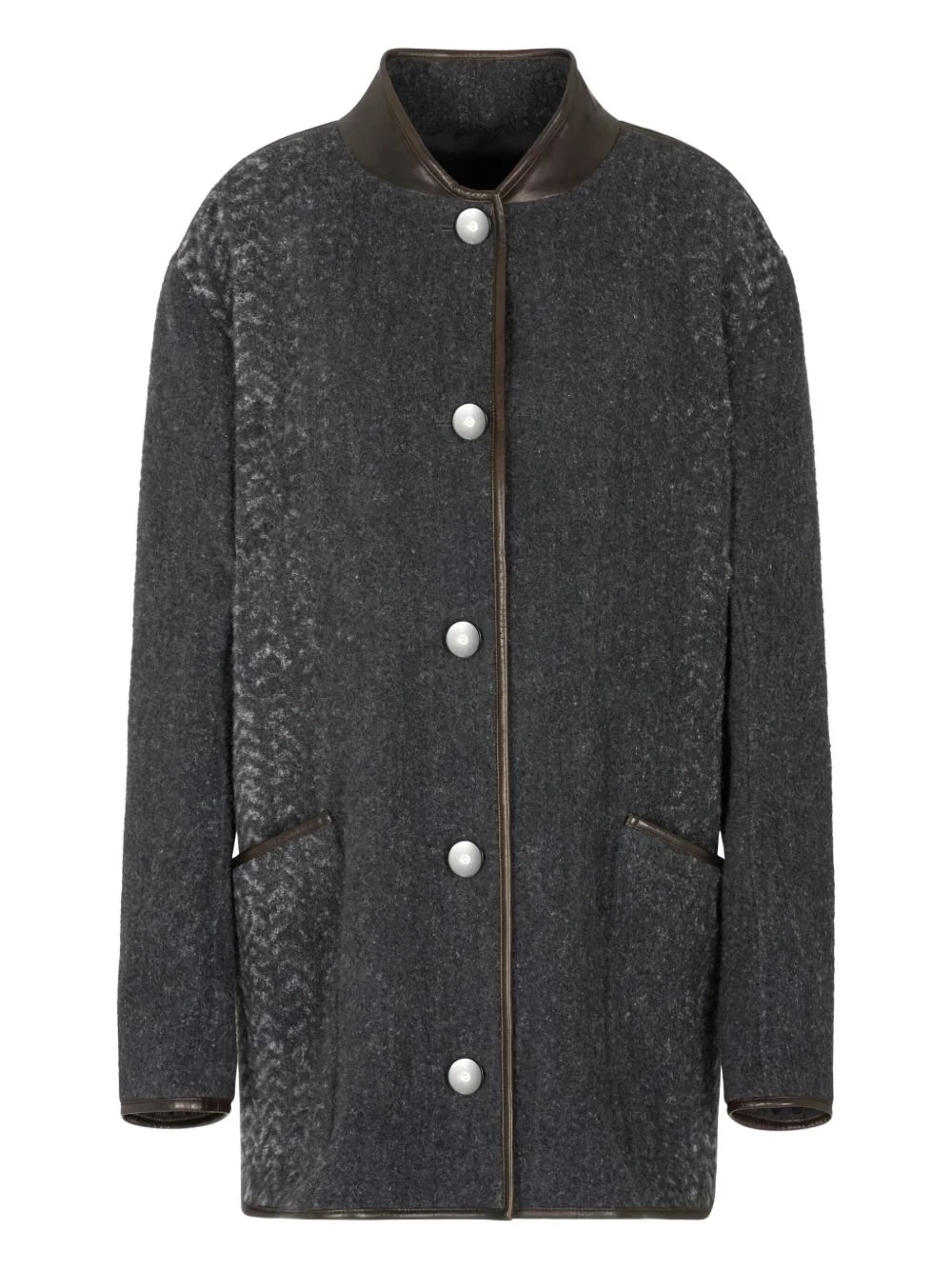 CHEVRON BOUCLÉ WOOL AND LEATHER PEA COAT