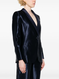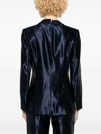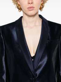 single-breasted satin blazer Highlights - Navy blue - Linen-silk blend - Satin finish - Shawl lapels - Shoulder pads - Long sleeves - Split cuffs - Chest welt pocket - Two side inset pockets - English rear vents - Full lining - Front button fastening Made in Italy Composition Outer: Linen/Flax 63%, Silk 37% Lining: Silk 100% SIZE & FIT Model measurements Height 5 ft 9 in(1.75 m) Bust/Chest 34.64 in(88 cm) Hips 36.61 in(93 cm) Waist 26.37 in(67 cm) FittingInformation Designed for a slim fit that sits just away from the body offering a close yet comfortable fit The internal shoulder pads offer a structured shape Made from a midweight non-stretch fabric This piece fits true to size – take your usual size