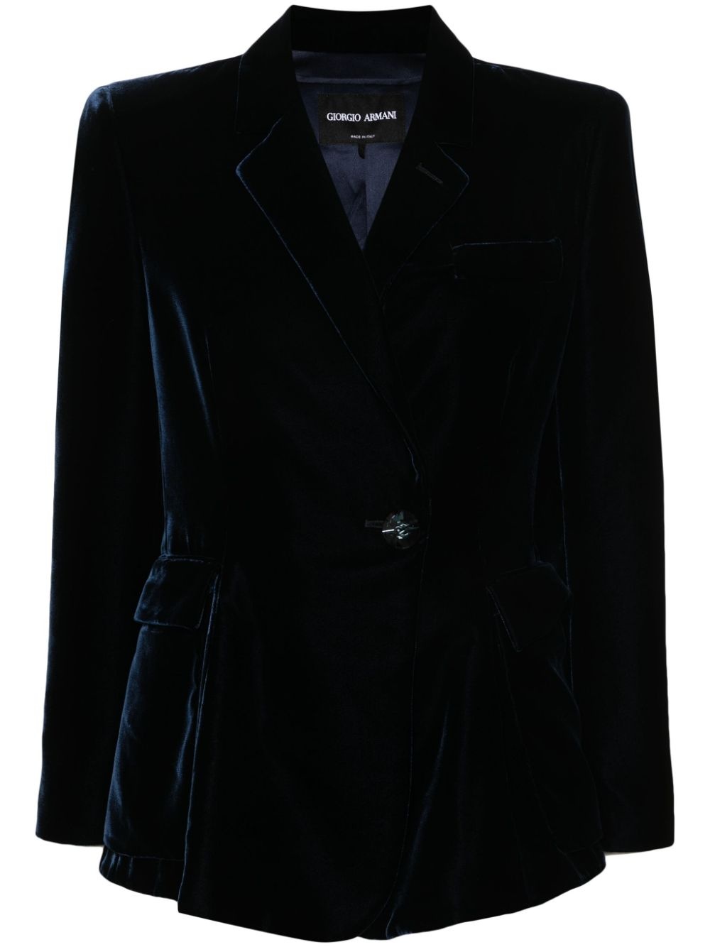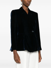 single-breasted velvet blazer Highlights - Galaxy blue - Silk - Velvet finish - Notched lapels - Shoulder pads - Long sleeves - Split cuffs - Chest welt pocket - Dart detailing - Two side flap pockets - Full lining - Straight hem - Crystal-embellished button - Front button fastening Made in Italy Composition Outer: Viscose 80%, Silk 20% Lining: Silk 100% SIZE & FIT Model measurements Height 5 ft 10 in(1.78 m) Bust/Chest 31.49 in(80 cm) Hips 37 in(94 cm) Waist 23.62 in(60 cm) FittingInformation Designed for a slim fit that sits just away from the body offering a close yet comfortable fit The internal shoulder pads offer a structured shape Made from a midweight non-stretch fabric This piece fits true to size – take your usual size