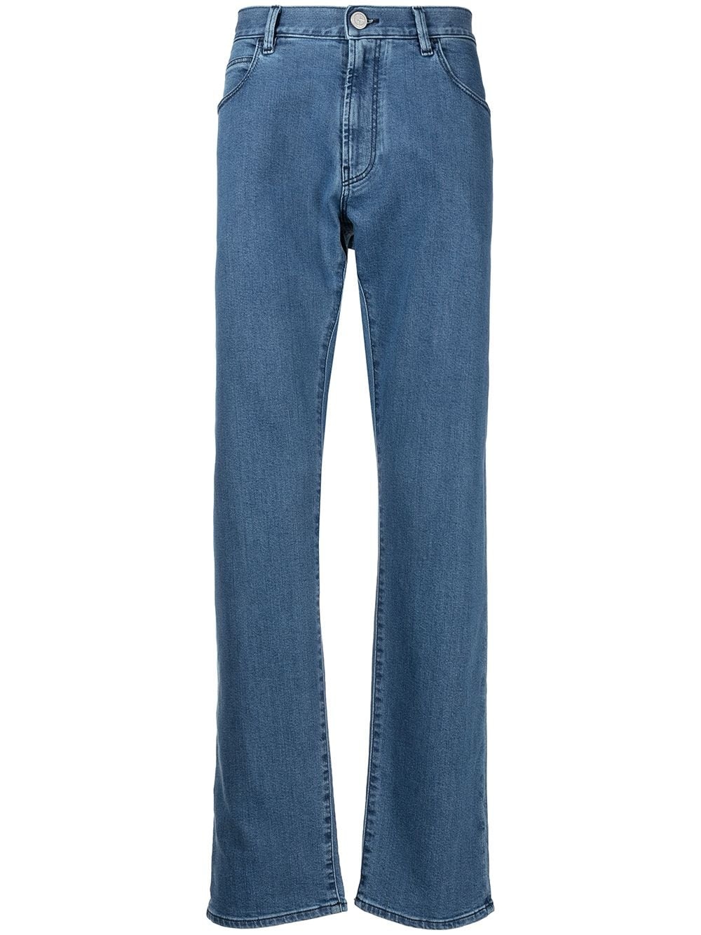 straight-leg jeans medium wash blue stretch cotton logo patch to the rear belt loops classic five pockets front button and zip fastening straight leg long length Made in Italy Composition Cotton 98%, Spandex/Elastane 2% SIZE & FIT Model measurements Height 6 ft 0 in(1.83 m) Bust/Chest 37.79 in(96 cm) Hips 37 in(94 cm) Waist 30.31 in(77 cm) FittingInformation This piece fits true to size. We recommend you get your regular size Designed for a slim fit at the waist and loose over the leg Made with a mid-weight stretch fabric Measurement INSIDE LEG 33.46 in(85 cm) Hem Width 7.08 in(18 cm) FRONT RISE 10.62 in(27 cm) WAIST 33.85 in(86 cm) BACK RISE 15.74 in(40 cm) HIPS 40.15 in(102 cm)