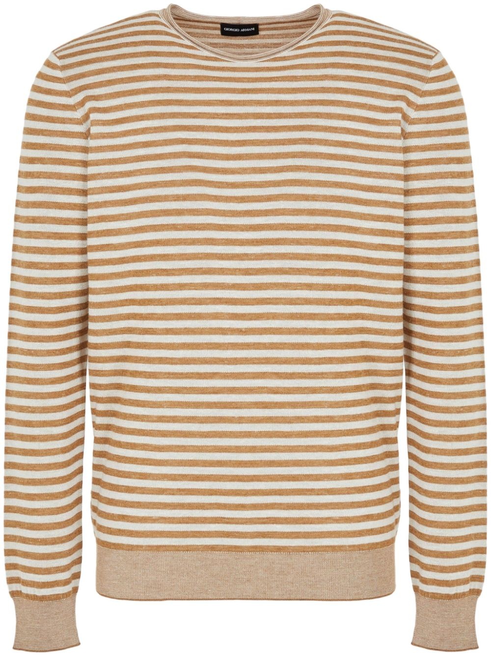 striped crew-neck jumper Highlights - Beige/cream white - Silk blend - Horizontal stripe pattern - Knitted construction - Crew neck - Long sleeves - Ribbed cuffs and hem Imported Composition Silk 58%, Cashmere 29%, Linen/Flax 10%, Polyamide 3%