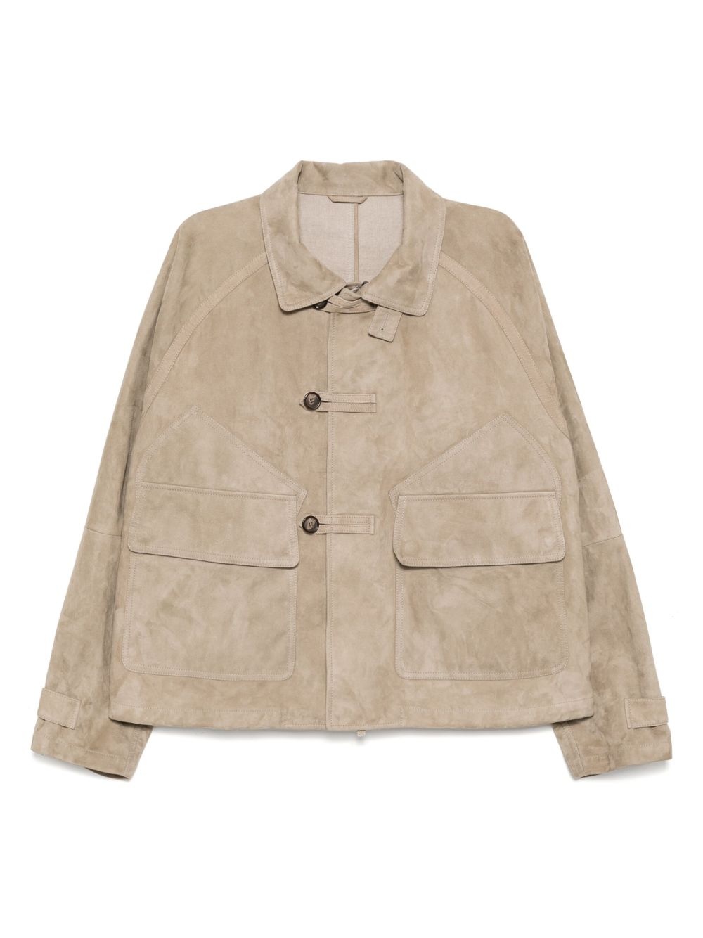 suede jacket Highlights - Khaki - Concealed front zip fastening - Front button fastening - Two front flap pockets - Long raglan sleeves Made in Italy Composition Outer: Lambskin 100%