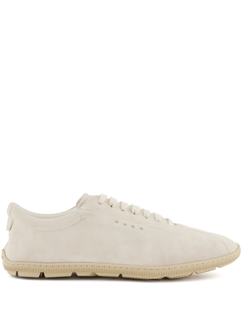 suede sneakers Highlights - Light beige - Front lace-up fastening - Perforated detailing - Debossed logo to the side - Branded heel counter Made in Italy Composition Sole: Rubber 100% Outer: Goat Skin 100% Lining: Calf Leather 100%