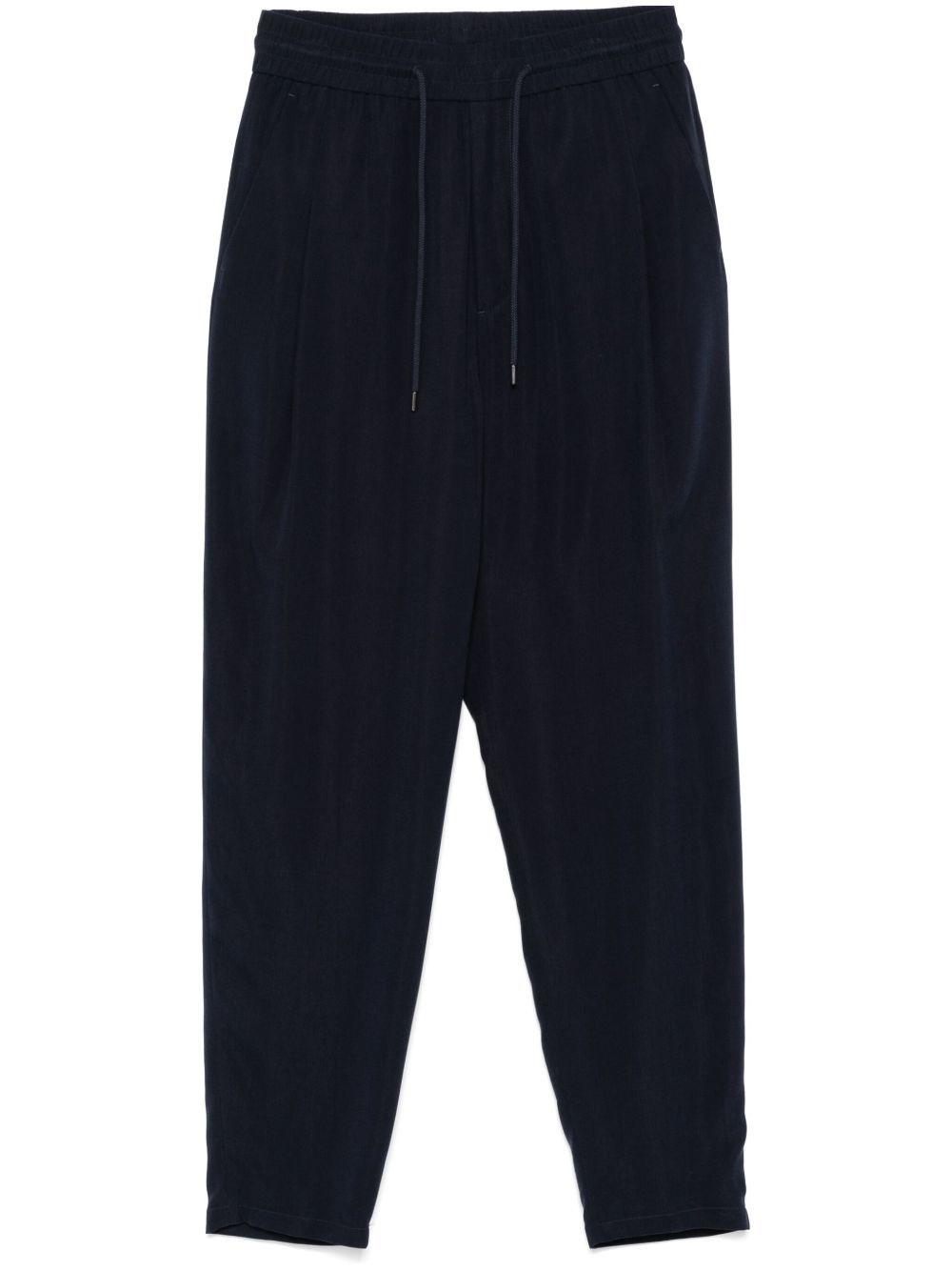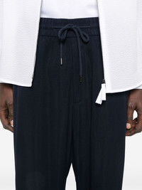tapered trousers Highlights - Oxford blue - Elasticated drawstring waistband - Two side slash pockets - Two rear welt pockets - Pleat detailing Made in Italy Composition Lining: Cupro 100% Outer: Cupro 100% SIZE & FIT Model measurements Height 6 ft 0 in(1.84 m) Bust/Chest 35.82 in(91 cm) Hips 37 in(94 cm) Waist 28.34 in(72 cm) FittingInformation Designed for a relaxed tapered leg, allowing a comfortable loose fit above the knee with a closer fit towards the calves Adjust this piece’s waistband to your preference using the drawstring Made from a midweight non-stretch fabric