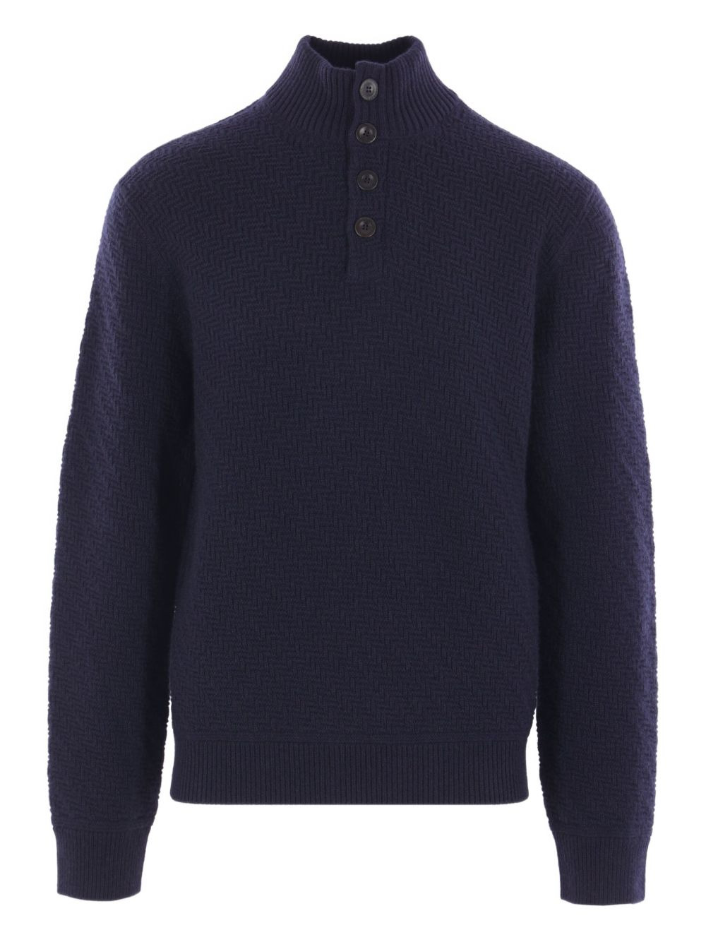 textured high-neck cashmere sweater Highlights - Dark blue - Cashmere fabric - Textured knit - High neck - Button fastening - Long sleeves Made in Italy Composition Cashmere 100% Washing instructions Read Manufacturer Guidelines
