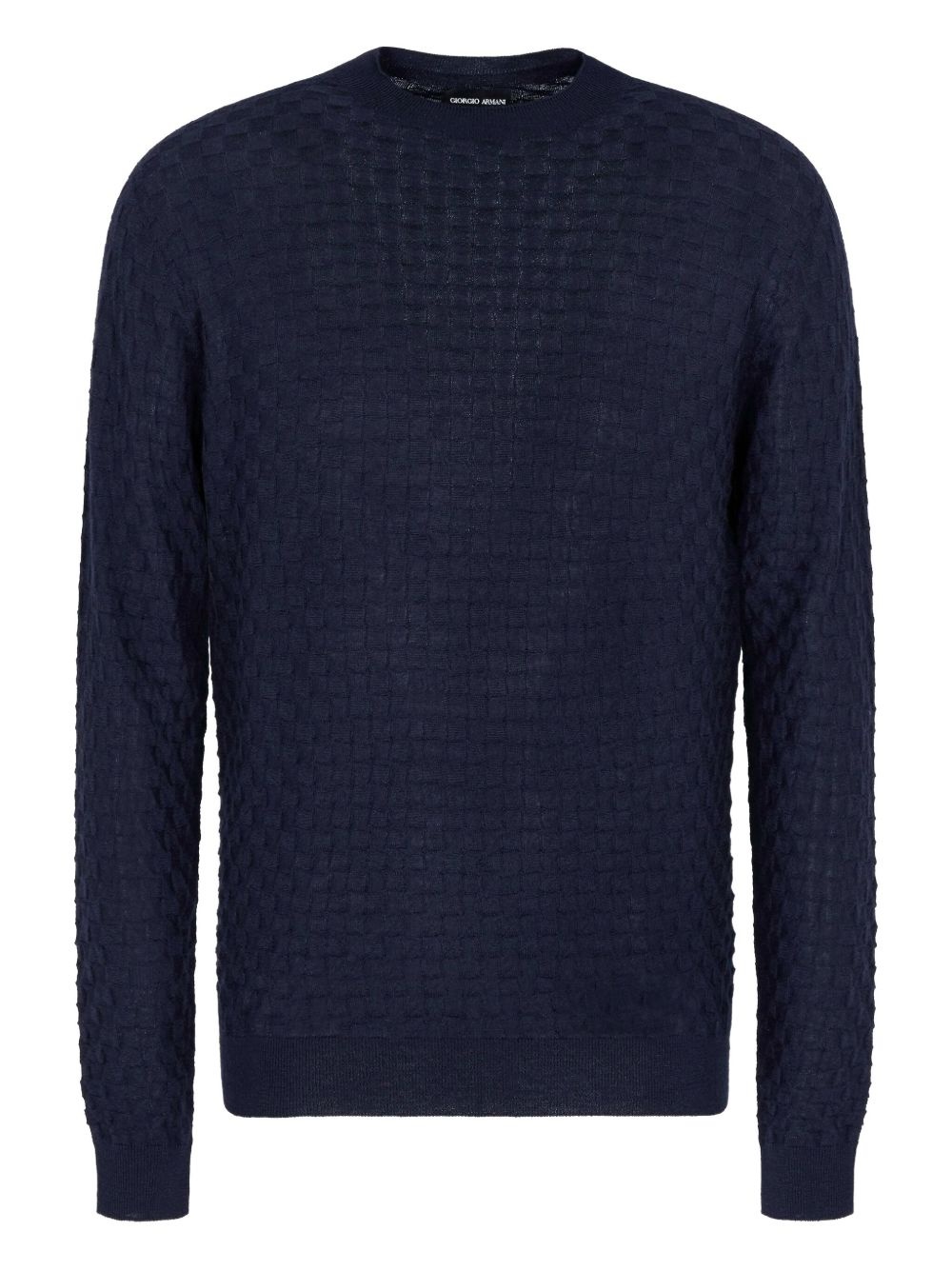 textured sweater Highlights - Dark blue - Cashmere-silk blend - Textured weave - Crew neck - Long sleeves Made in Italy Composition Cashmere 70%, Silk 30% Washing instructions Read Manufacturer Guidelines