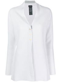 three button cardigan baby blue cashmere-silk blend fine knit collarless button fastening long sleeves straight hem Made in Italy Composition Cashmere 79%, Silk 21% SIZE & FIT Model measurements Height 5 ft 10 in(1.79 m) Bust/Chest 33.07 in(84 cm) Hips 35.82 in(91 cm) Waist 24.01 in(61 cm) FittingInformation This piece fits true to size. We recommend you get your regular size Cut for a slim fit Made with a mid-weight fabric