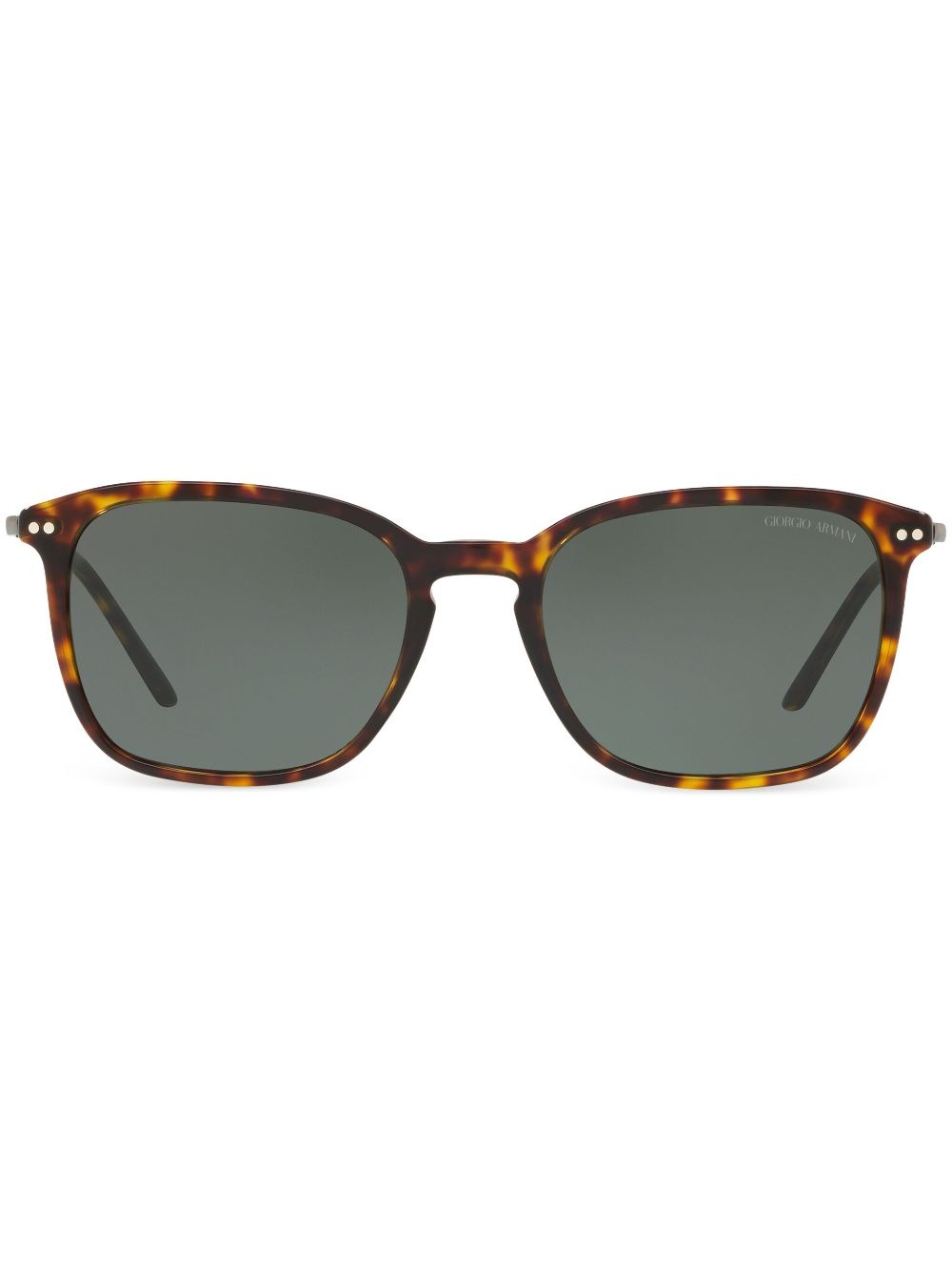 tortoiseshell sunglasses Highlights - Dark havana brown - Acetate - Tortoiseshell effect - Square frame - Tinted lenses - Lens decal - Curved tips - These glasses come with a protective case. Made in Italy Composition Acetate 100% SIZE & FIT Measurement Bridge Width 0.74 in(1.9 cm) Lens Diameter 2.12 in(5.4 cm) Arm Length 5.7 in(14.5 cm)