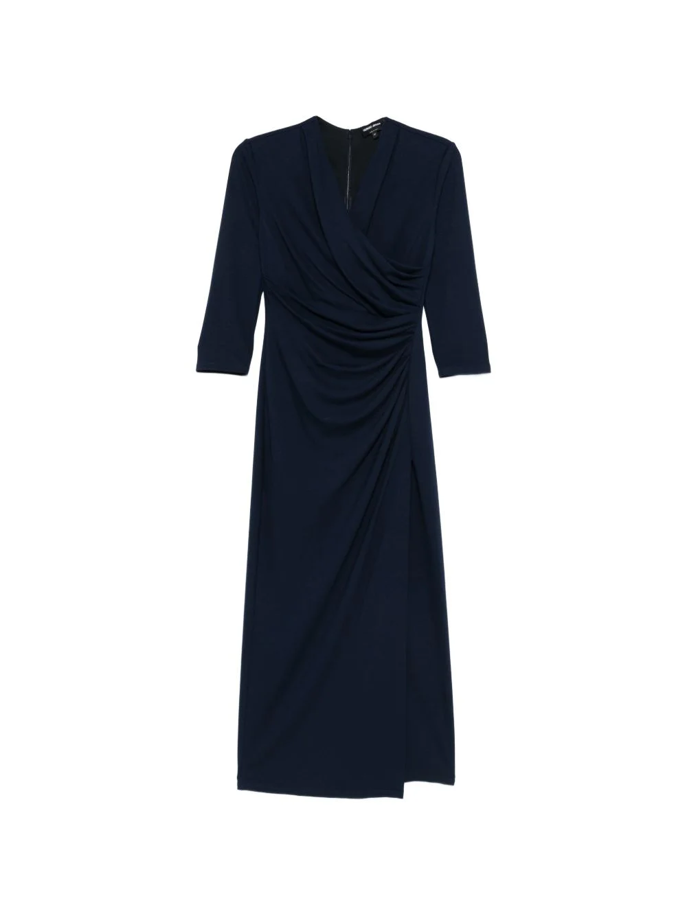 v-neck draped maxi dress Highlights - Maritime blue - V-neck - Three-quarter length sleeves - Draped detailing - Concealed zip fastening - Slit detail Made in Italy Composition Viscose 71%, Polyamide 24%, Elastane 5% Washing instructions Dry Clean Only