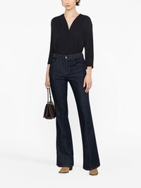 V-neck silk blouse Spun from silk, this Giorgio Armani blouse arrives in a navy-blue hue for the AW23 collection. Cut to a V-neck silhouette, it features a subtle button closure. Highlights - Navy blue - Silk - V-neck - Front button fastening - Three-quarter length sleeves - Straight hem Made in Italy Composition Silk 100% SIZE & FIT Model measurements Height 5 ft 10 in(1.78 m) Bust/Chest 30.7 in(78 cm) Hips 34.64 in(88 cm) Waist 23.22 in(59 cm) FittingInformation Designed to be unstructured, offering a loose fit throughout Made from a lightweight non-stretch fabric This piece fits true to size – take your usual size