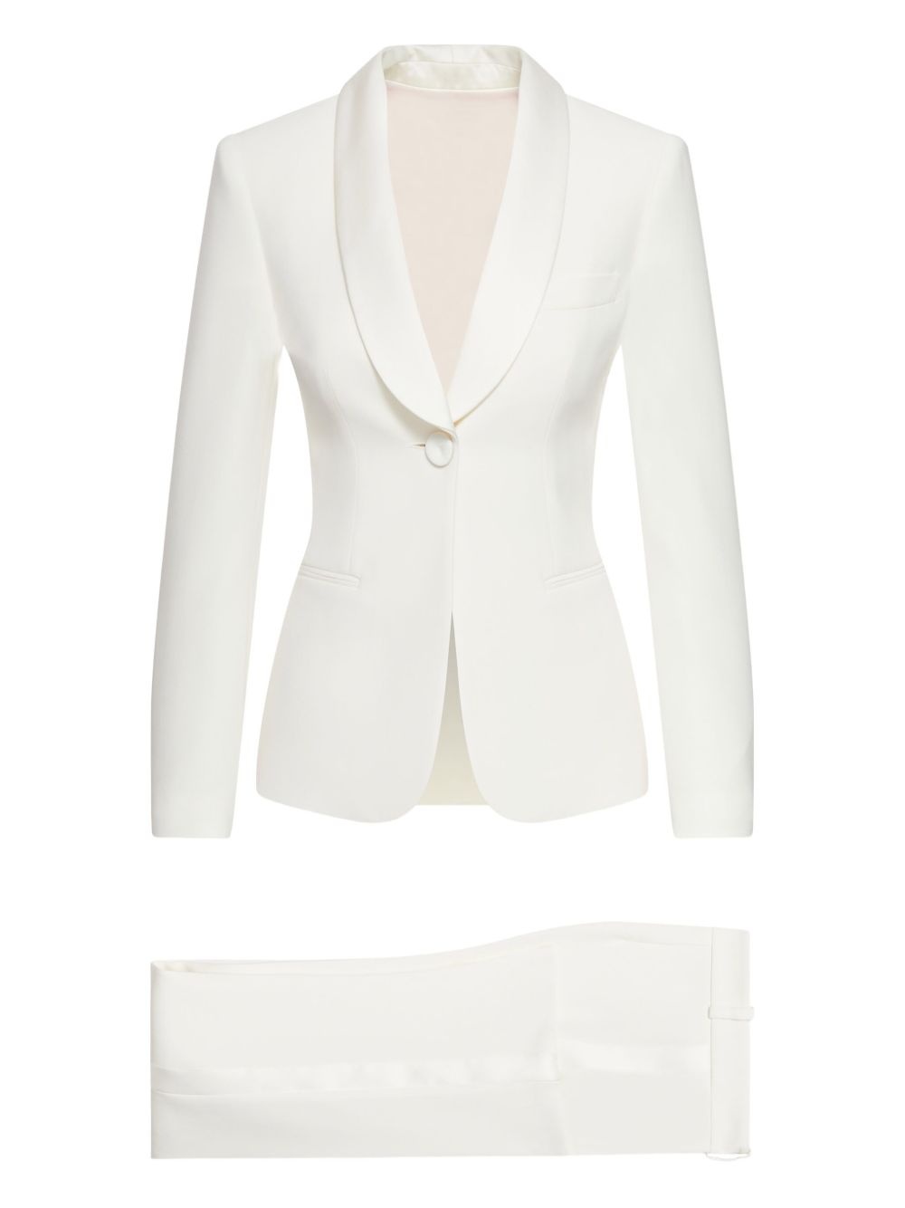 wool single-breasted suit Highlights - White - Single-button front fastening - Slit pocket at the chest - Long sleeves - Button and zip front fastening - Belt loops Made in Italy Composition Wool 100% Washing instructions Read Manufacturer Guidelines