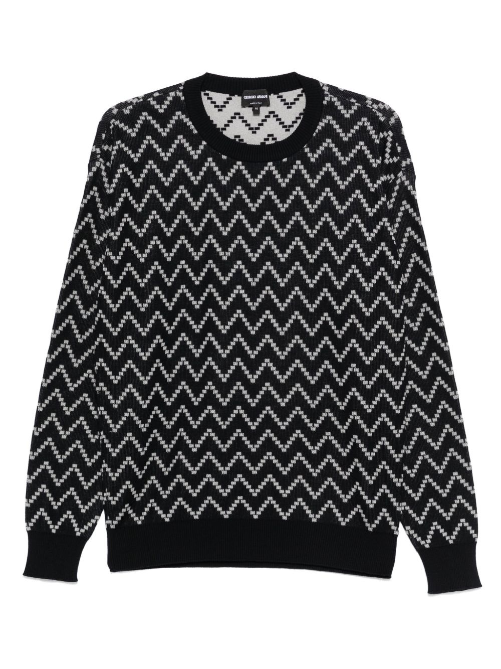 zigzag-pattern jumper Highlights - Black - Crew neck - Drop shoulder - Long sleeves - Ribbed cuffs and hem Made in Italy Composition Cotton 85%, Cashmere 15% Washing instructions Hand Wash