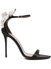 100mm embellished stiletto heeled sandals Highlights - Black - Ankle strap - Stiletto heel - Flower embellishment - Open toe Made in Italy Composition Sole: Calf Leather 100% Outer: Fabric 100% Lining: Calf Leather 100% SIZE & FIT Measurement HEEL 3.93 in(10 cm)