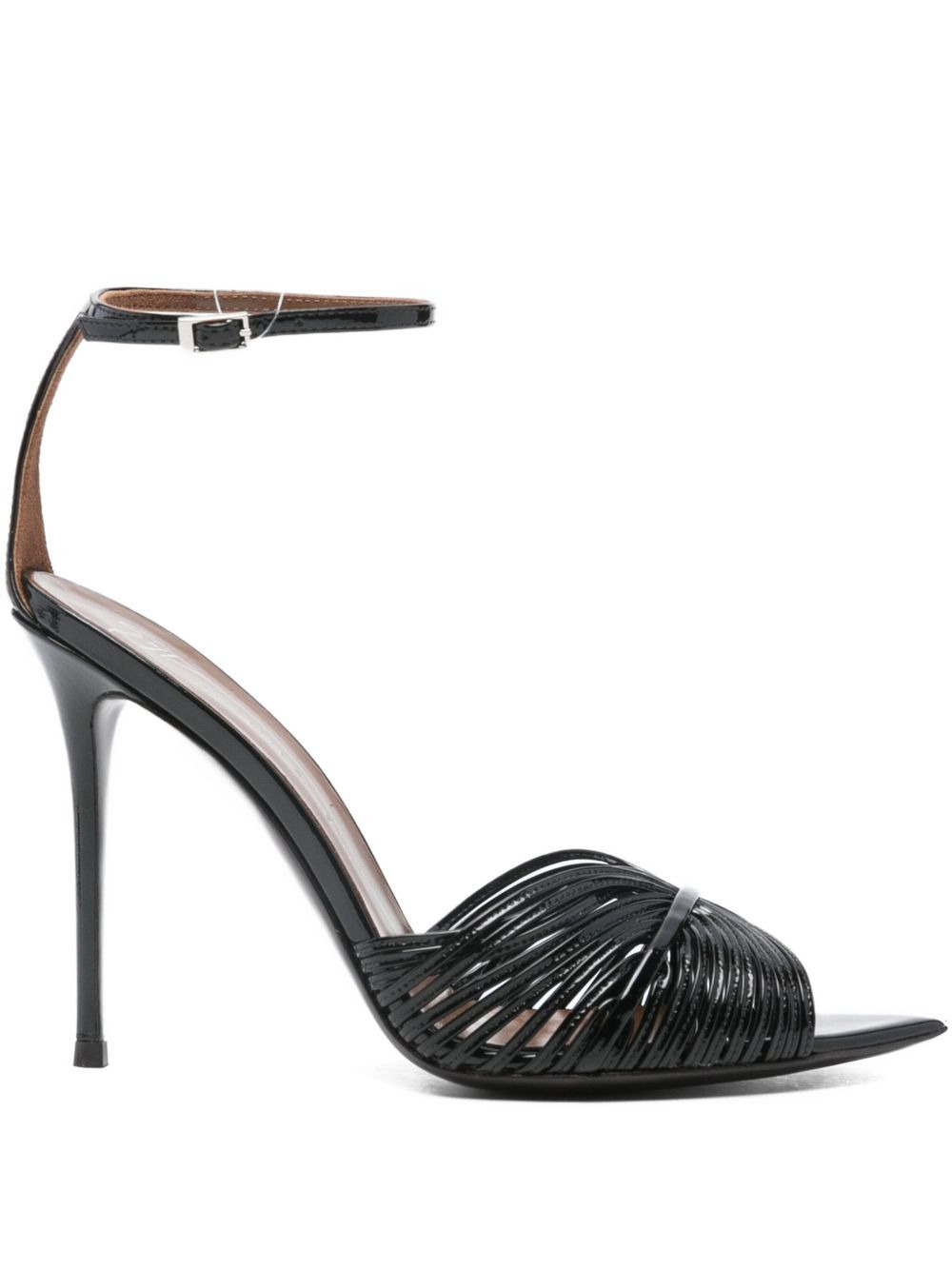 105mm Intriigo Shell leather sandals Highlights - Black - Leather material - Stiletto heel - Ankle strap - Buckle fastening Made in Italy Composition Lining: Leather 100% Sole: Leather 100% Outer: Leather 100% SIZE & FIT Measurement HEEL 4.13 in(10.5 cm)