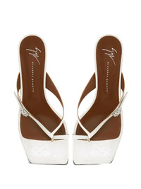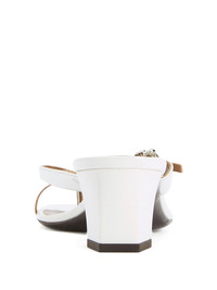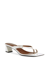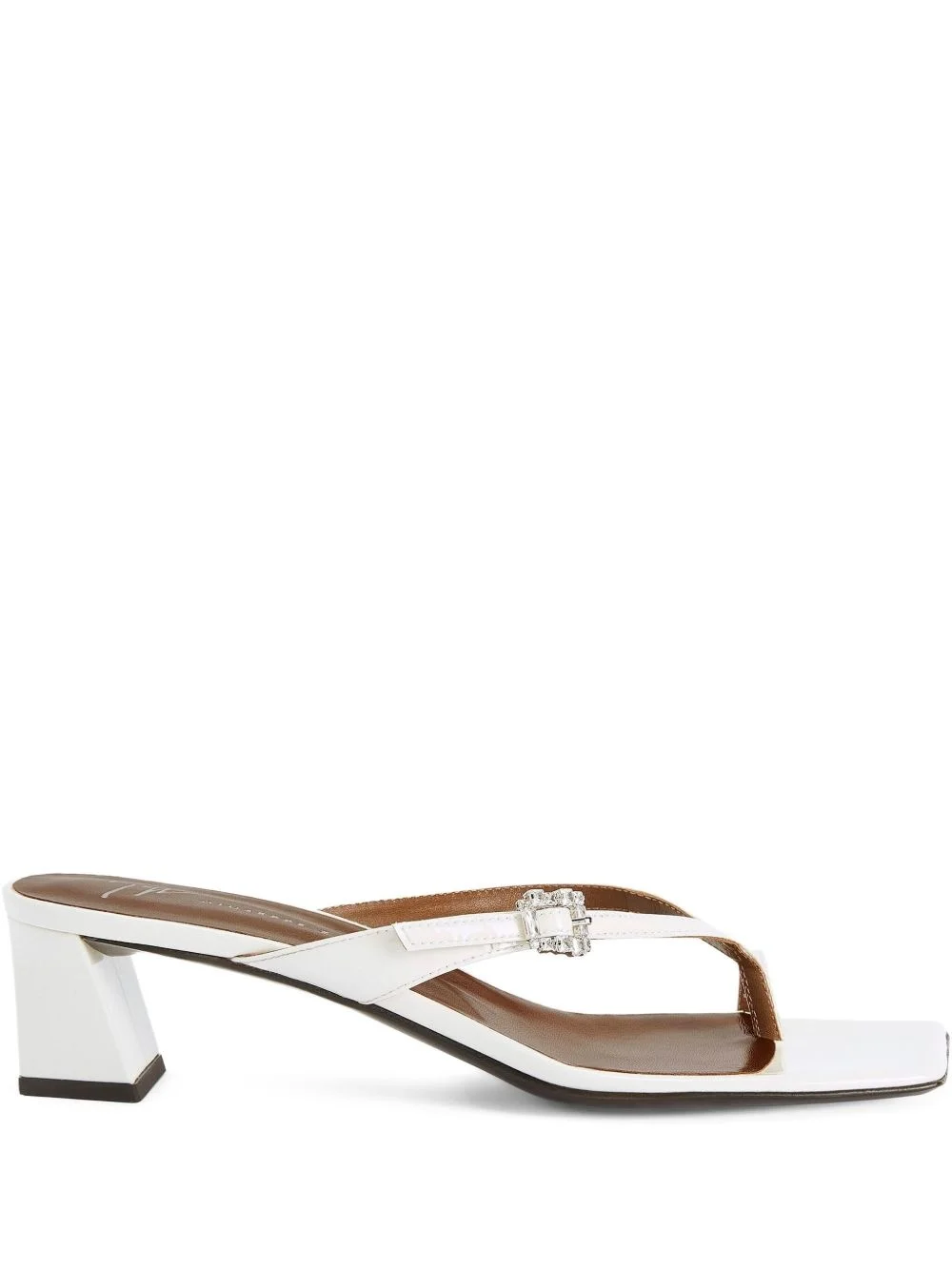 45mm Amandhine sandals Highlights - White - Side buckle fastening - Single toe strap - Crystal buckle detail - Branded footbed Made In Italy Composition Sole: Leather 100%, Rubber 100% Lining: Calf Leather 100% Outer: Patent Leather 100% SIZE & FIT Measurement HEEL 1.77 in(4.5 cm)