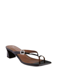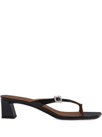 45mm Amandhine sandals Highlights - Black - Glossy finish - Sculptural heel - Toe loop design - Embellished buckle detail - Open back Made in Italy Composition Sole: Leather 100%, Rubber 100% Lining: Calf Leather 100% Outer: Patent Leather 100% SIZE & FIT Measurement HEEL 1.77 in(4.5 cm)