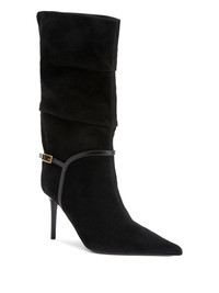85mm SECRET pleated suede boots Highlights - Black - Suede - Patent trim - Golden-finish buckle - Tapered toe Made in Italy Composition Outer: Goat Skin 95%, Lambskin 5% Lining: Leather 100%, Goat Skin 100% Sole: Leather 100%