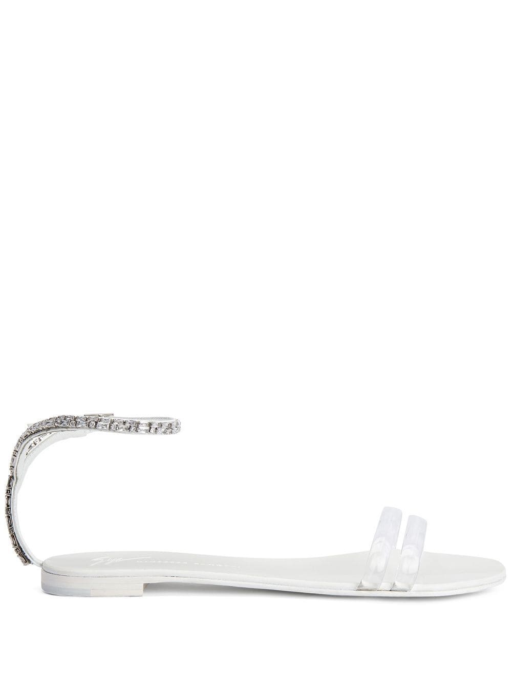 Agathe Plexi sandals Highlights - Silver-tone - Leather - Metallic finish - Crystal embellishment - Double-strap design - Buckle-fastening ankle strap - Open toe Made in Italy Composition Sole: Leather 100% Outer: PVC 100%, Patent Leather 100%, Polyurethane 66%, Polyester 34% Lining: Leather 100%