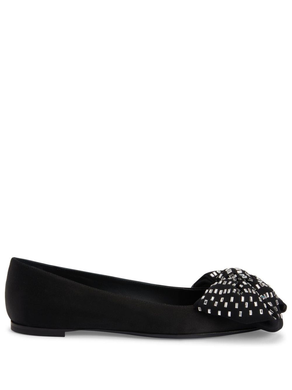 Alexandrine Flat crystal-embellished bow ballerina shoes Highlights - Black - Satin finish - Oversize bow detail - Crystal embellishment - Pointed toe - Slip-on style - Branded leather insole - 5mm low stacked heel - Leather sole Made in Italy Composition Outer: Satin 100% Sole: Leather 100%