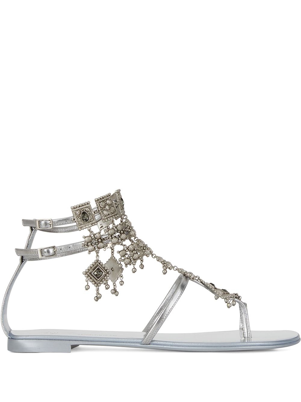 Amira charm-embellished sandals silver-tone calf leather bead detailing charm detail open toe buckle-fastening ankle strap Made in Italy Composition Outer: Calf Leather 80%, Metal 15%, Crystal 5% Lining: Leather 100% Sole: Leather 100%