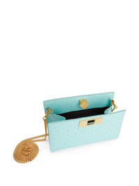 Annhita clutch bag Highlights - Turquoise blue-green - Leather - Ostrich-skin effect - Gold-tone hardware - Turn-clasp fastening - Detachable chain-link shoulder strap - Main compartment - Internal slip pocket - Internal logo stamp Made in Italy Composition Outer: Leather 100%