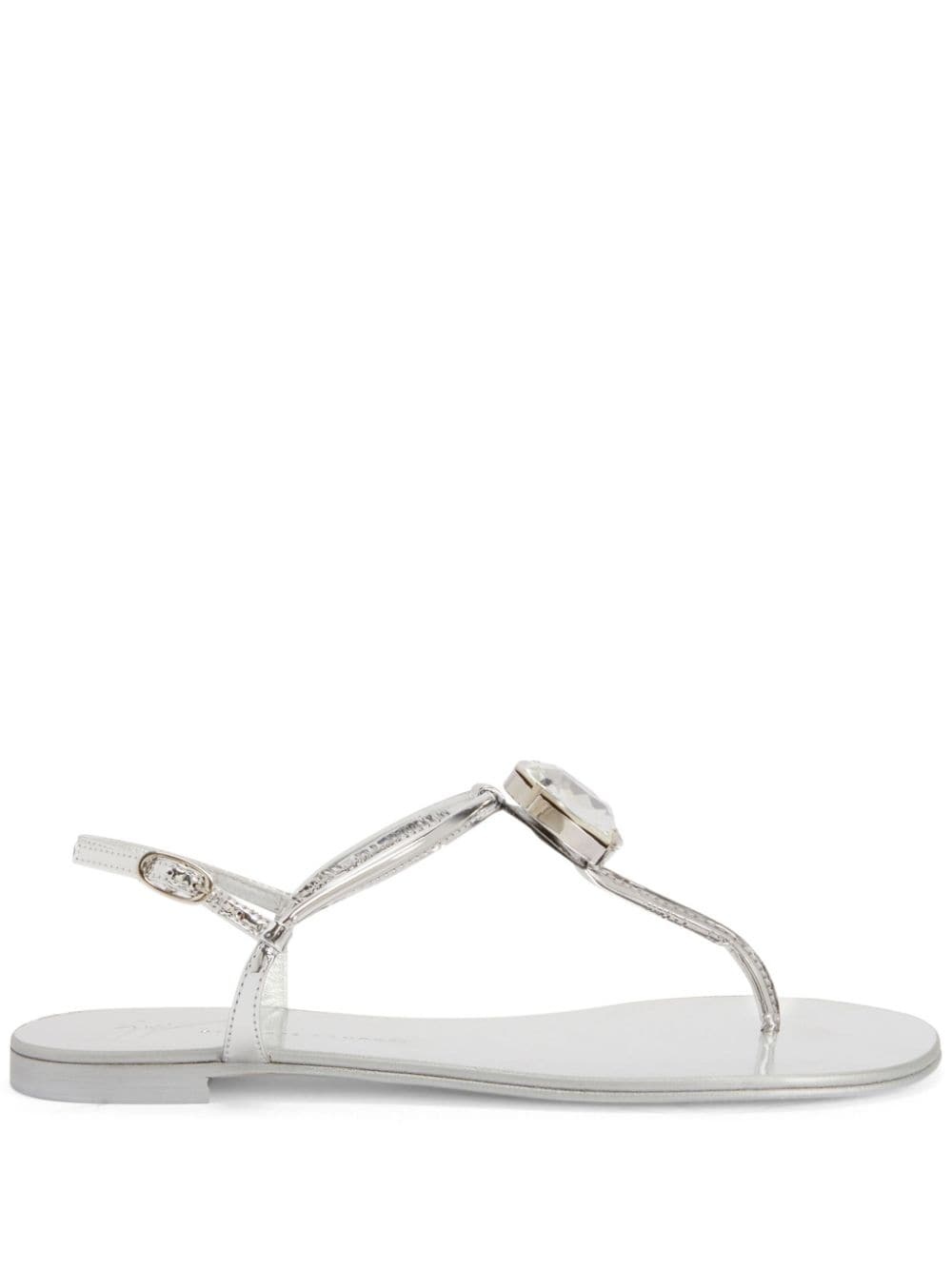 Anthonia metallic-effect flat sandals Highlights - Silver-tone - Leather - Metallic effect - Crystal embellishment - Thong strap - Buckle-fastening ankle strap - Branded insole - Flat sole Made in Italy Composition Other fibres 100%