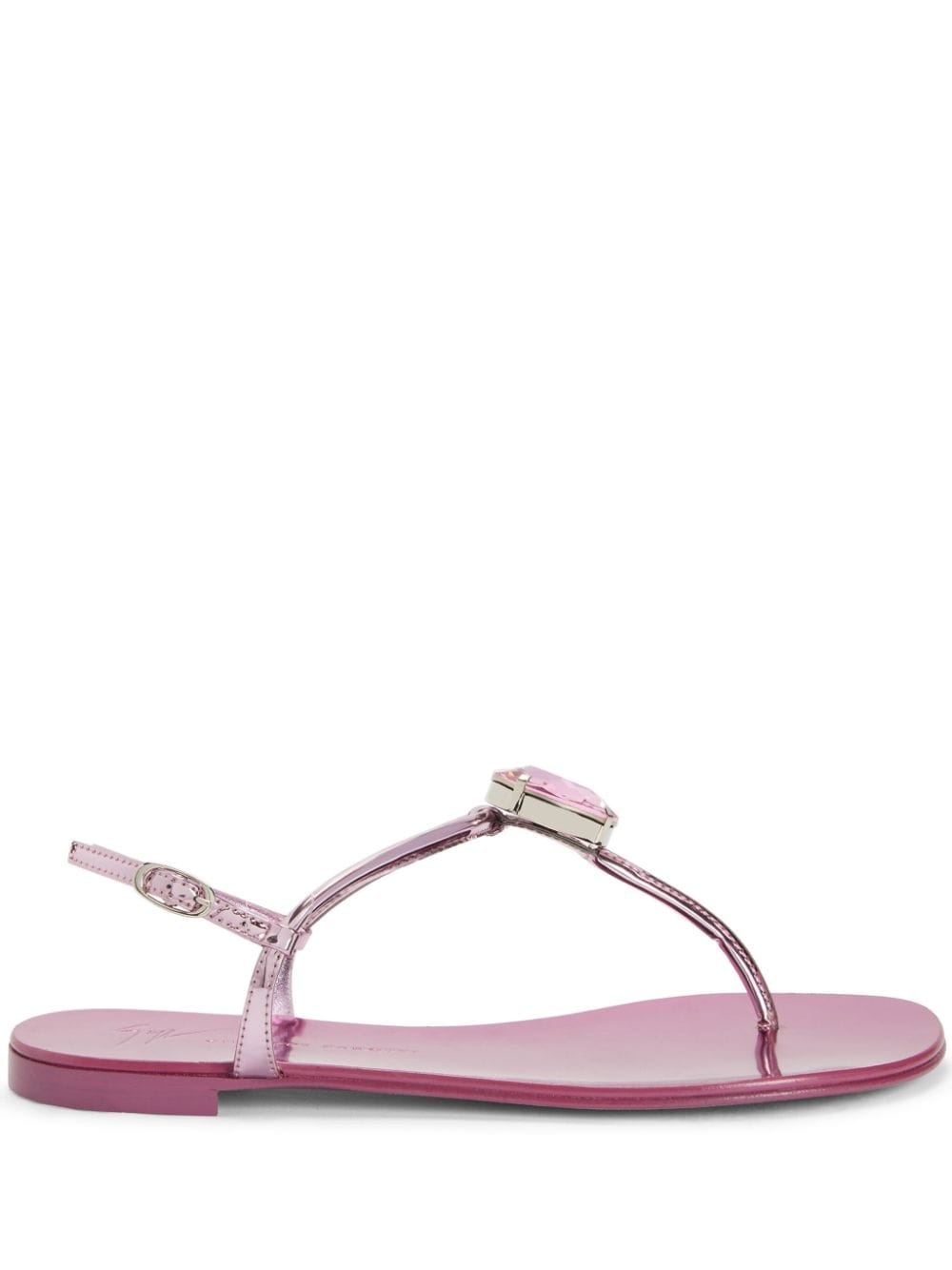 Anthonia metallic-effect flat sandals Highlights - Rose pink - Leather - Metallic effect - Crystal embellishment - Thong strap - Buckle-fastening ankle strap - Branded insole - Flat sole Made in Italy Composition Other fibres 100%