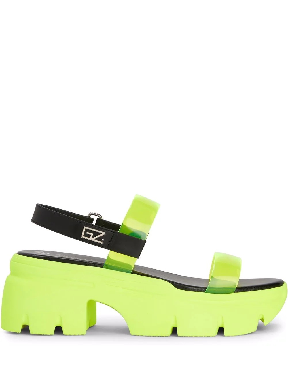 Apocalypse chunky-sole sandals neon yellow leather two-tone design double-strap design slingback strap ridged rubber sole platform sole Made in Italy Composition Outer: Vinyl 100% Sole: Rubber 100% Lining: Leather 100%