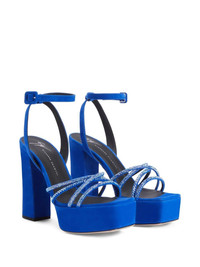 120mm Arhama embellished platform sandals Highlights - Electric blue - Suede - Crystal embellishment - Multi-way strap design - Branded leather insole - Square toe - Buckle-fastening ankle strap - High block heel - Platform sole Made in Italy Composition Suede 100%